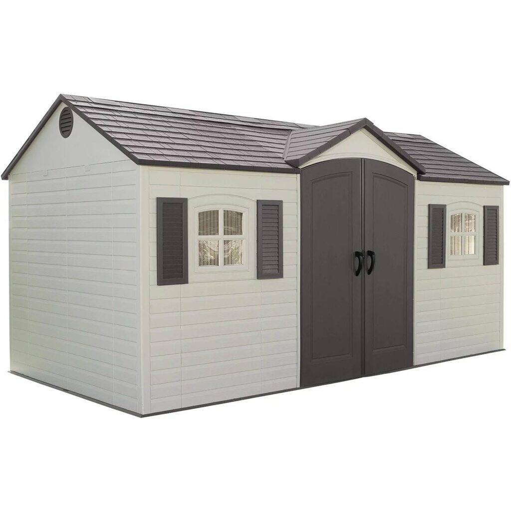 Its wide double doors offer easy access for riding mowers, bikes, and large equipment. With tall 6-ft side walls and a high 8-ft peak, you’ll have plenty of vertical space for shelves, hooks, or hanging storage. Optional accessories like windows, loft kits, and ramp upgrades can help you customize the shed for your exact needs.
